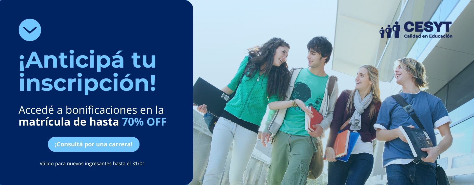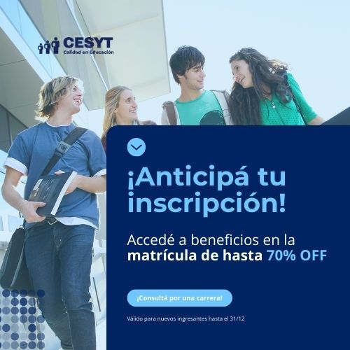 CESYT articula todas sus carreras con Licenciaturas de la Universidad Abierta Interamericana, UAI. Ofrece la posibilidad de cursar simultáneamente dos Tecnicaturas en 3 años, tales como, Turismo + Hotelería o Marketing + Comercio Internacional, adquiriendo de este modo conocimientos complementarios que te permitirán tomar mejores decisiones en tu vida profesional, además de ofrecerte una ventaja importante para tu CV al momento de insertarte en el mercado laboral.